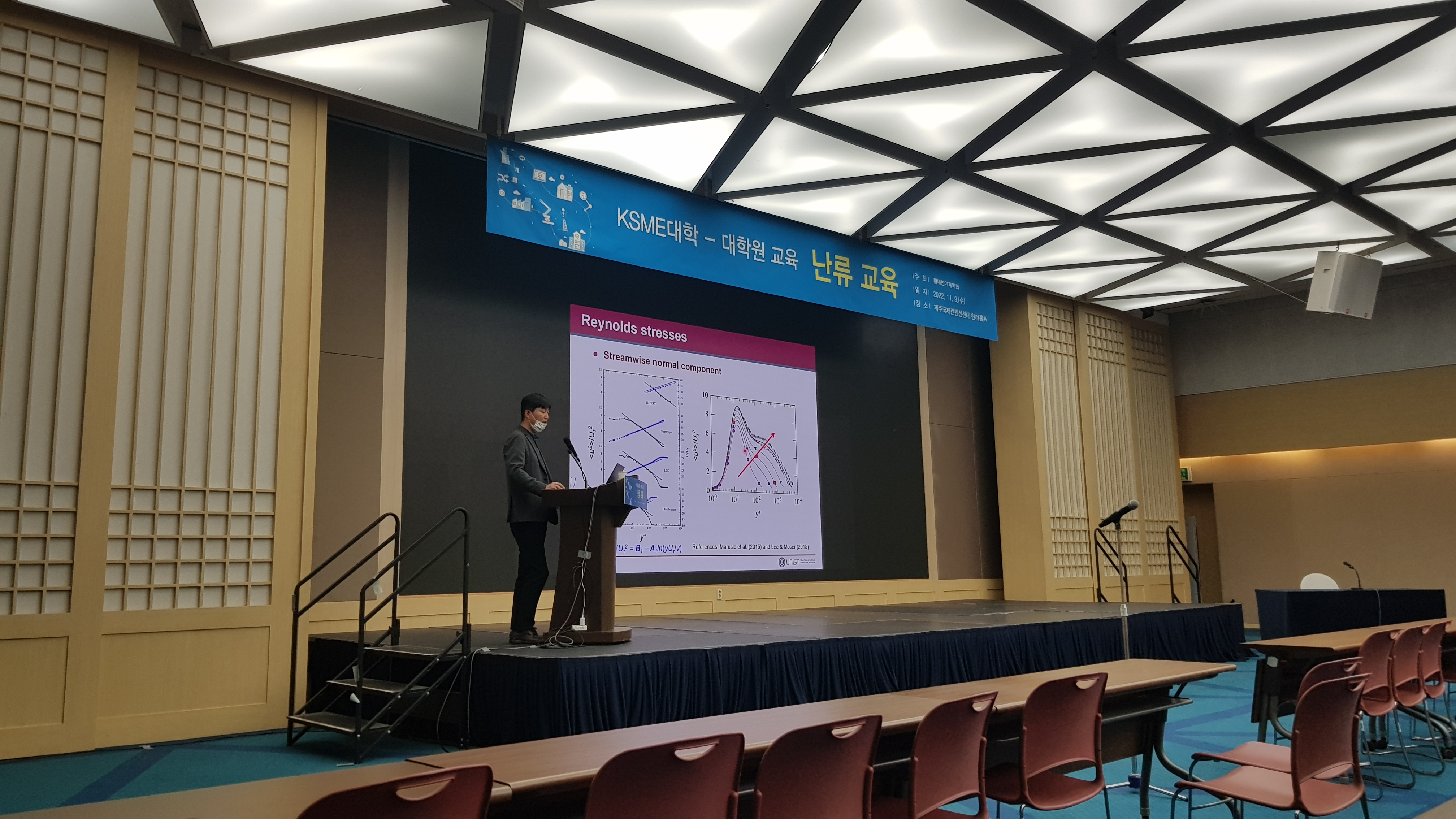 2022년 대한 기계학회는 10년 계약 마지막으로 ICC 제주에서 열렸습니다. 난류 교육이 진행되었는데 이재화 교수님께서 Wall bounded turbulence를 강의하고 계십니다. 이어서 제가 turbulent heat transfer 강의를 했습니다.