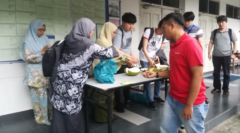 말레이시아에서 뭘 해보고 싶냐는 질문에 두리안을 먹어보고 싶다는 반응이 나오자 교수님께서 시장에서 두리안을 사다 주셨습니다. 맛은 살짝 바나나 같은 맛이었습니다.