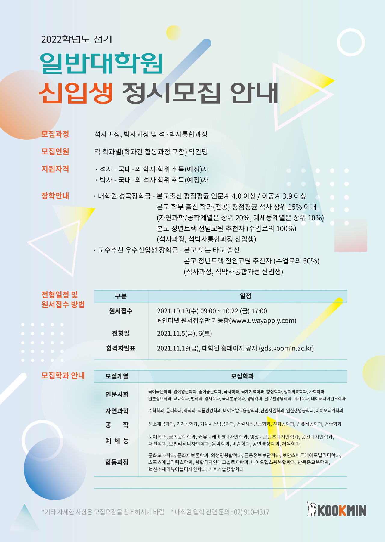 현재 국민대학교 일반대학원 정시모집이 진행중입니다.